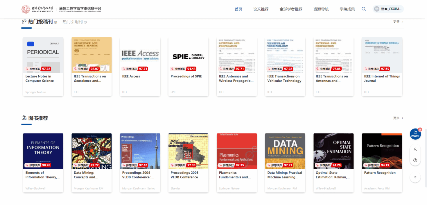 平台依托数智技术构建了四大核心功能模块,为学术探索提供全方位支撑:一是学术资源集成检索,通过语义分析技术实现跨数据库、跨文献类型的一站式智能检索,精准识别检索意图、关联相关文献,大幅提升资料查找效率与精准度;二是学术论文精准推荐,通过智能算法分析用户检索历史、阅读偏好及学科热点,推送高相关度前沿成果,助力师生把握领域动态、激发创新灵感;三是全球学者智能推荐,解析学术合作关系网络,匹配国内外相关领域知名及潜在合作者,为学术交流、科研协作与人才引进搭建桥梁;四是学院学术成果交流,展示学院教师科研产出,打造内部成果展示与经验分享的互动平台,凝聚学术共识、强化学术共同体建设。