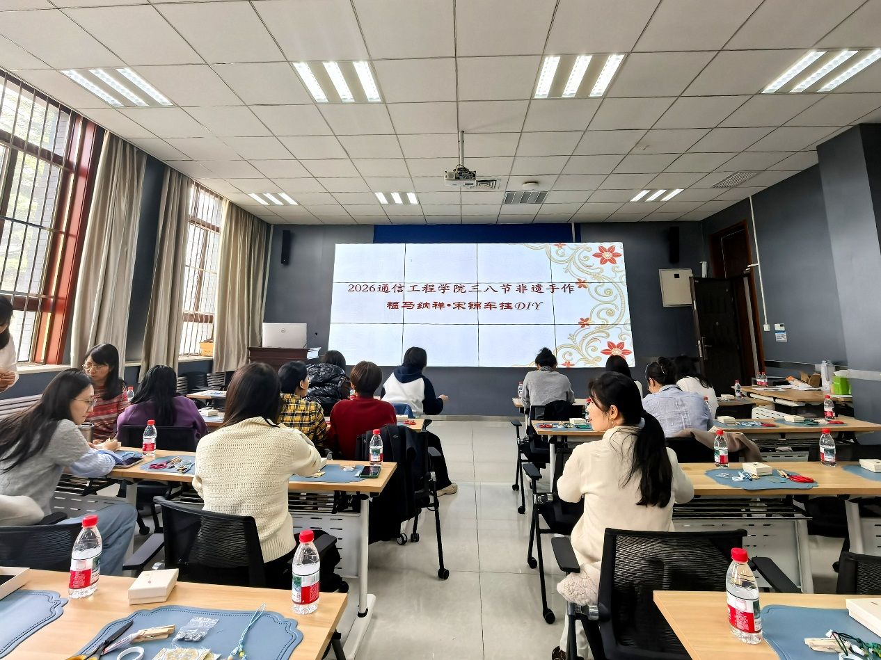 在主楼2区219室举办了一场别开生面的非遗手作体验活动。本次活动以“福马纳祥·宋锦车挂DIY”为主题,吸引了众多女教职工热情参与,在指尖流转的经纬间,共赴一场跨越千年的传统美学之约。