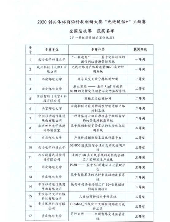 附件:2020创共体杯前沿科技创新大赛“先进通信+”主题赛全国总决赛_获奖名单
