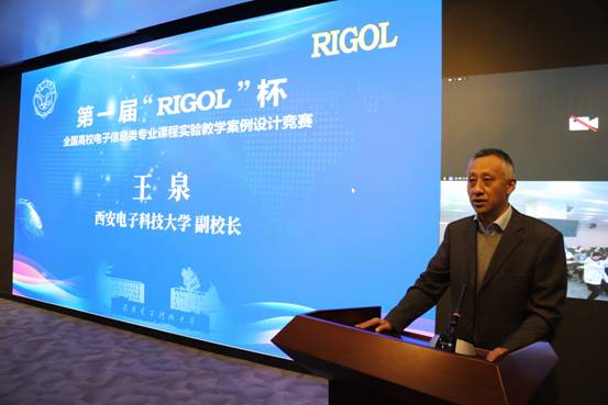 副校长王泉教授,电子信息类专业教指委副主任、北京大学王志军教授,示范中心联席会电子学科组组长、东南大学胡仁杰教授,普源精电科技股份有限公司运营副总裁朱峰先生分别线下和线上致辞,在颁奖结束后,由获得RIGOL杯的北京邮电大学尹良老师分享了获奖经验,由评审专家代表北京交通大学侯建军教授分享了案例设计方法,最后由评审委员会常务副主任陈彦辉教授对本届竞赛进行了总结。
