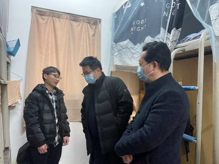 党委书记李赞、执行院长李云松、副院长顾华玺、党委副书记沈强等学院领导带领研究生辅导员、本科生辅导员深入南北校区学生宿舍走访慰问返校学生,与学生深入交流,了解学生返校情况,第一时间掌握学生返校思想状况,及时回应学生诉求。