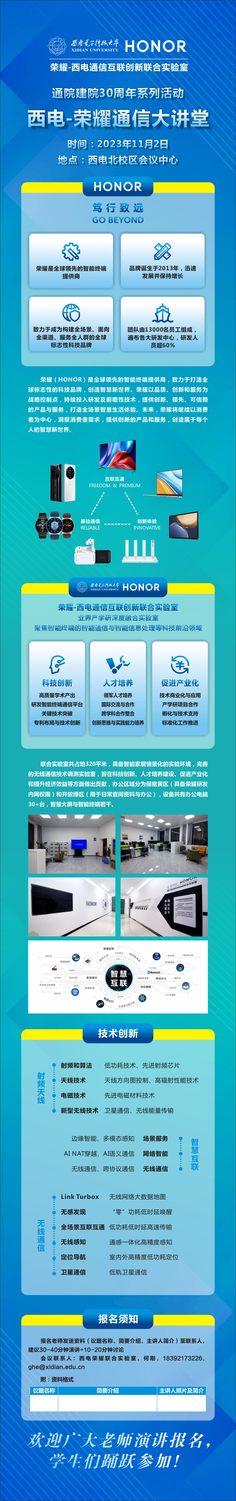 基于荣耀-西电通信互联创新联合实验室举办的《西电荣耀通信大讲堂》,也系通院建院30周年系列活动,将于11月2日在西电会议中心(北校区)举办。