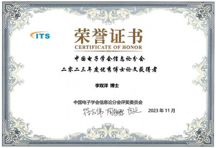 优秀博士论文,此次再获中国电子学会信息论分会的充分肯定。