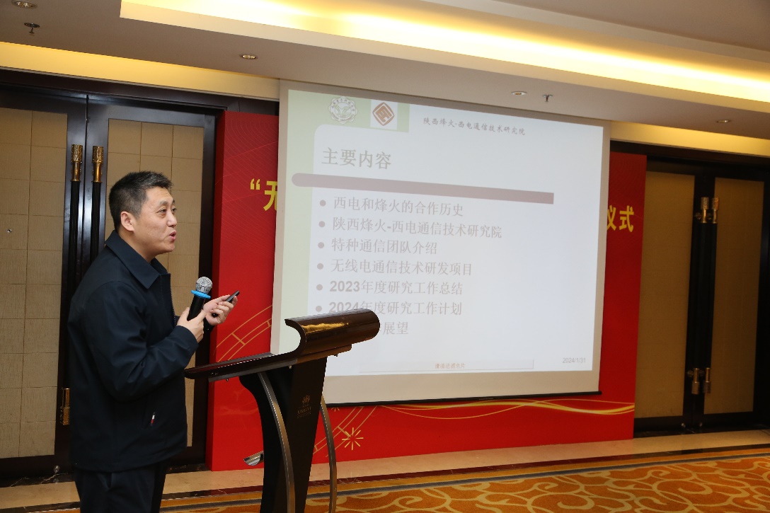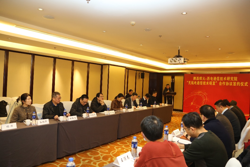 副校长李赞、通院院长李云松,项目负责人马卓,通院产教融合中心执行主任李靖,通院教授杜栓义,司江勃,孙锦华及研究院其他项目骨干人员出席。陕西烽火电子股份有限公司总经理杨勇,副总经理刘宏伟,副总工程师王小军,副总工程师兼西安研发中心主任马志成,西安研发中心副主任张健,王陈春,冯永乾出席。签约仪式由陕西烽火科技部部长杨立主持。