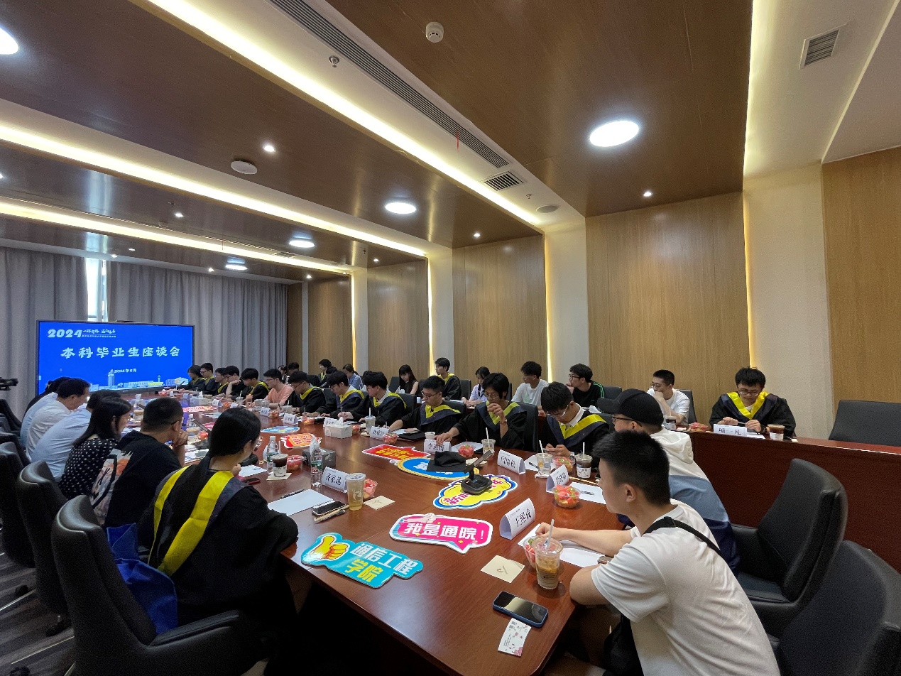 在南校区会议中心104室举办2024届本科毕业生座谈会。学院党委书记魏峻、执行院长李云松、本科教学办公室主任李靖、毕业班辅导员及2024届本科毕业学生代表参加本次座谈会,学院党委副书记沈强主持。