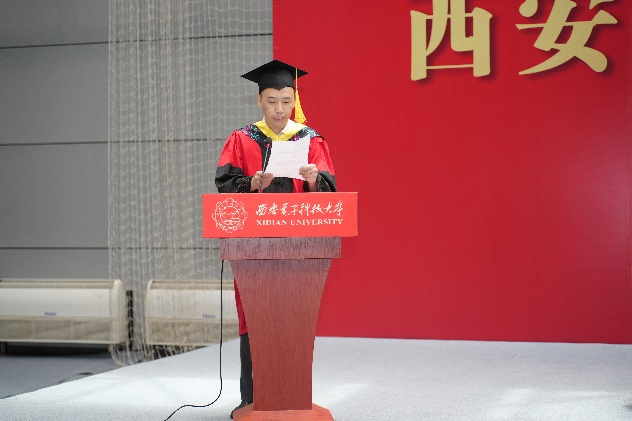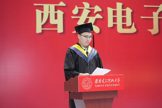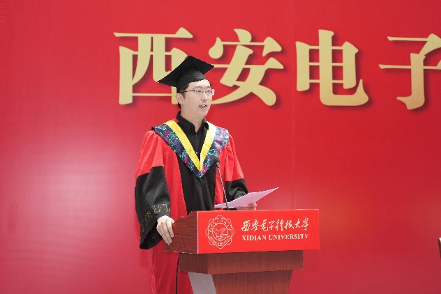授位仪式上,顾华玺宣读了学院2024届本科生学位授予决定。教师代表承楠结合自身求学经历,鼓励同学们砥砺奋斗,正确认识自身价值与时代责任,上下求索,敢为人先,发掘时代的本源创新力。毕业生代表通信工程专业刘梓江同学回顾了本科四年求学时光,并呼吁全体毕业生未来继续秉持西电精神,在我国通信领域用奋斗彰显青春最亮丽的底色。毕业生家长代表彭泽刚同学母亲杨慧女士代表毕业生家长向学院领导、老师们对学生的悉心培养与辛勤付出表达感谢,并祝愿2024届毕业生们不忘初心,勇毅前行。