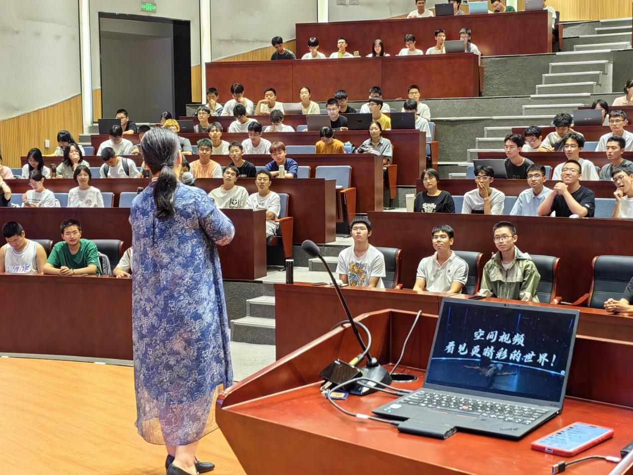 教授李静为学生带来一场3D空间视频前沿技术的精彩分享,2024级本科生辅导员及百余名学生参与本次活动。